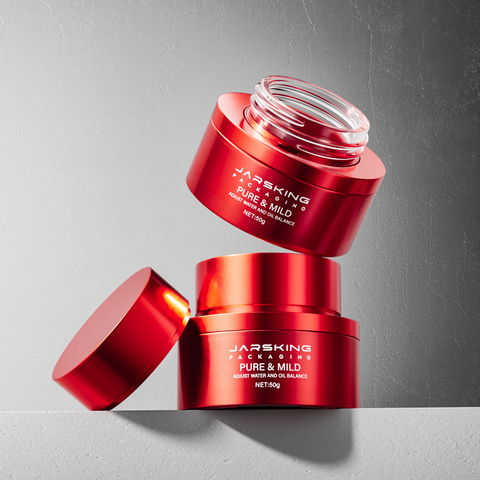 Envase de crema facial vintage rojo único de lujo vacío con logotipo y color personalizado embalaje tarro cosmético de cristal de boca ancha con tapa